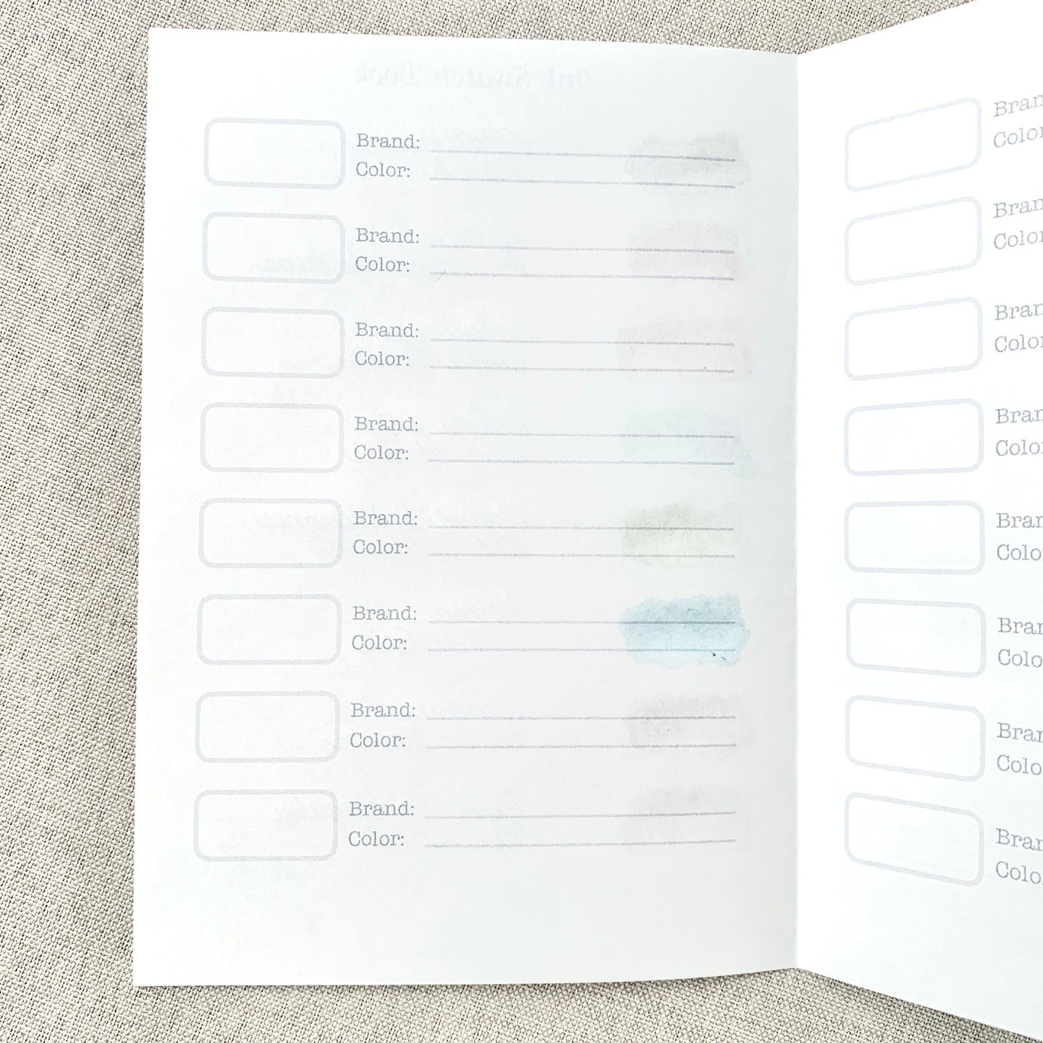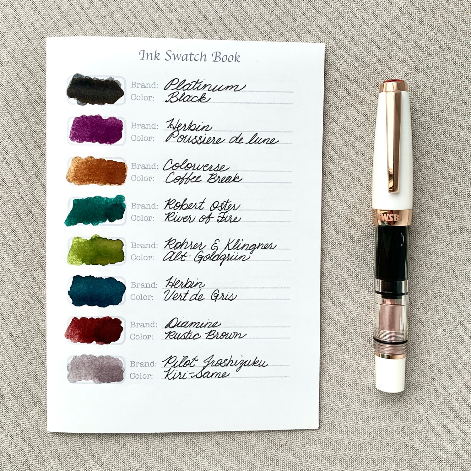 Catalog your fountain pen inks in this ink log swatch book.