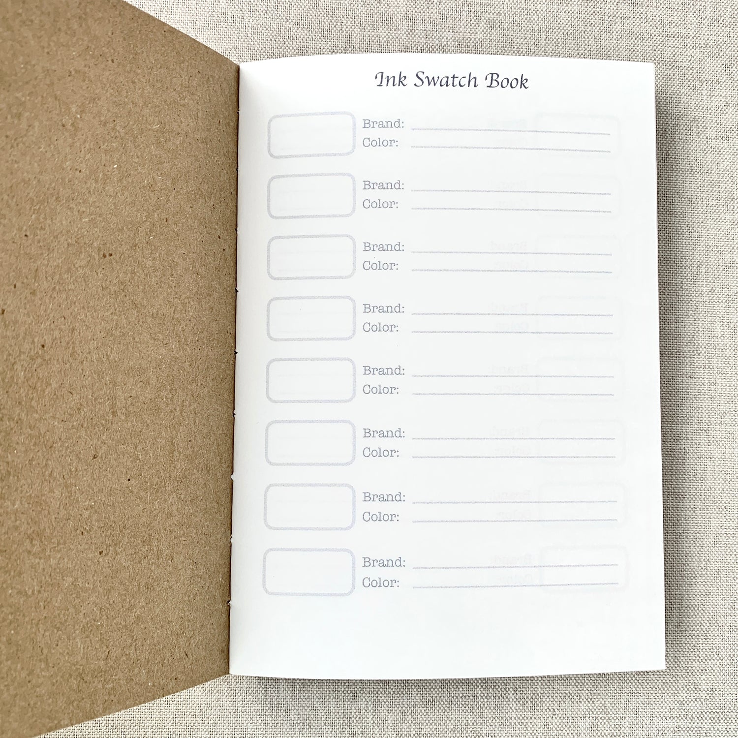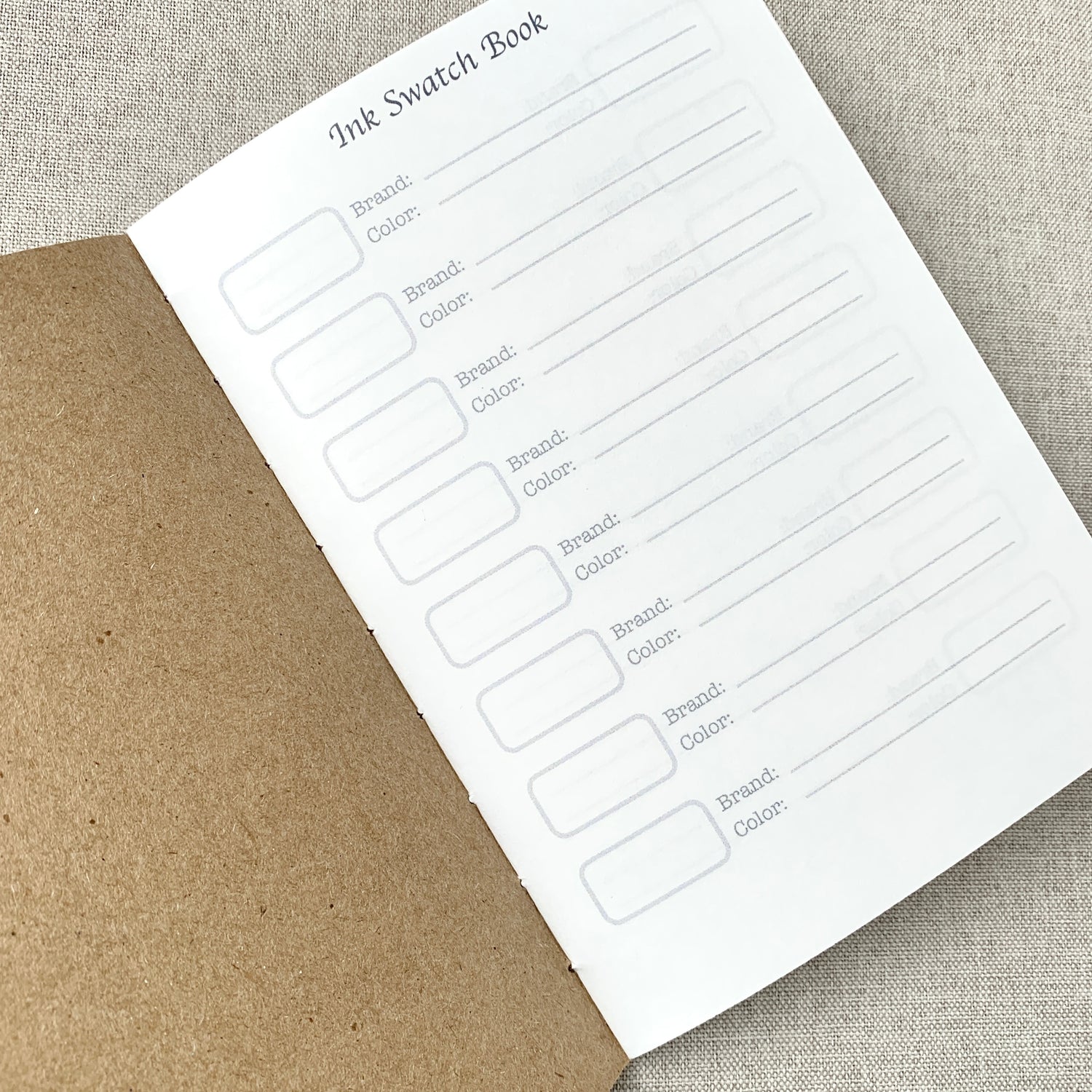 Ink Swatch Book Kraft Travelers Notebook Insert - A6 - Ink Log - Fountain Pen Friendly Notebook - Hand-Stitched Binding