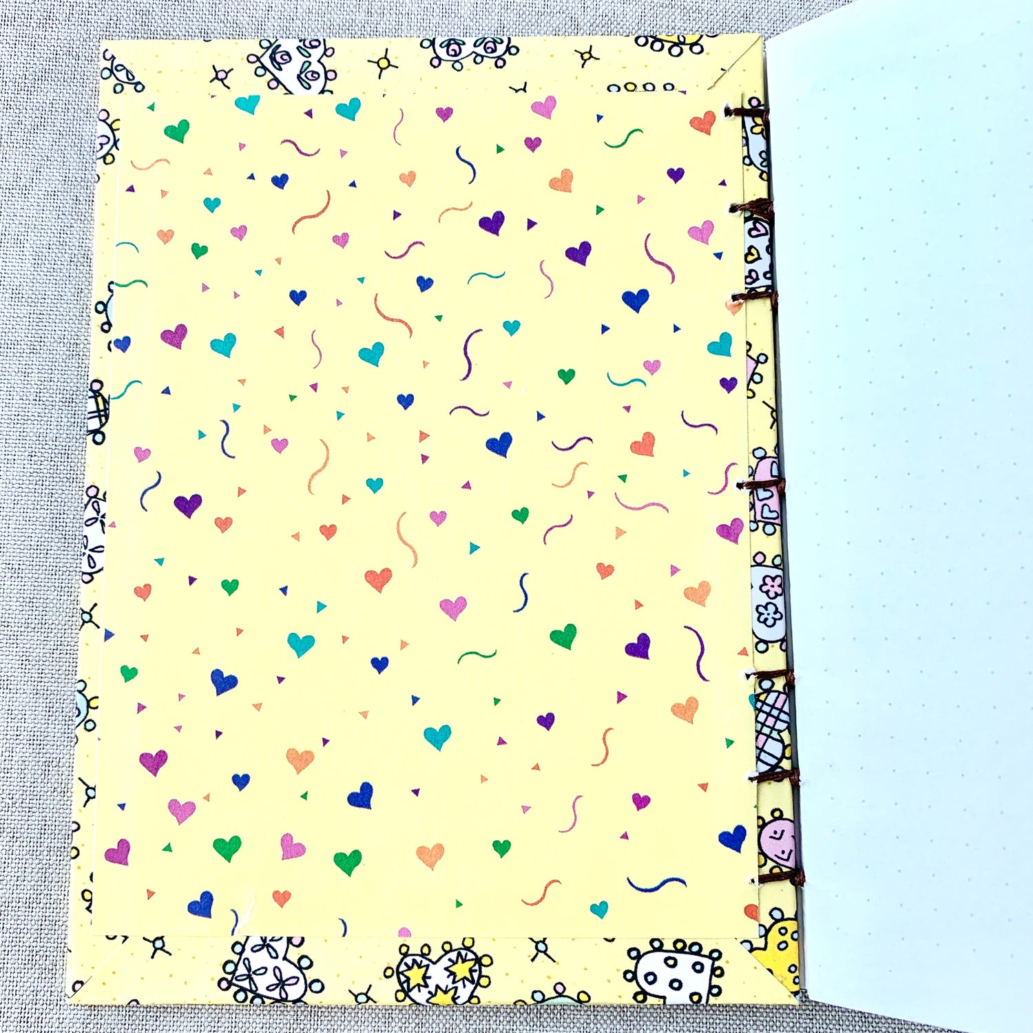 Pastel Stitch Heart - A6 - Dot Grid - Coptic Bound - Fountain Pen Notebook - Handmade Journal