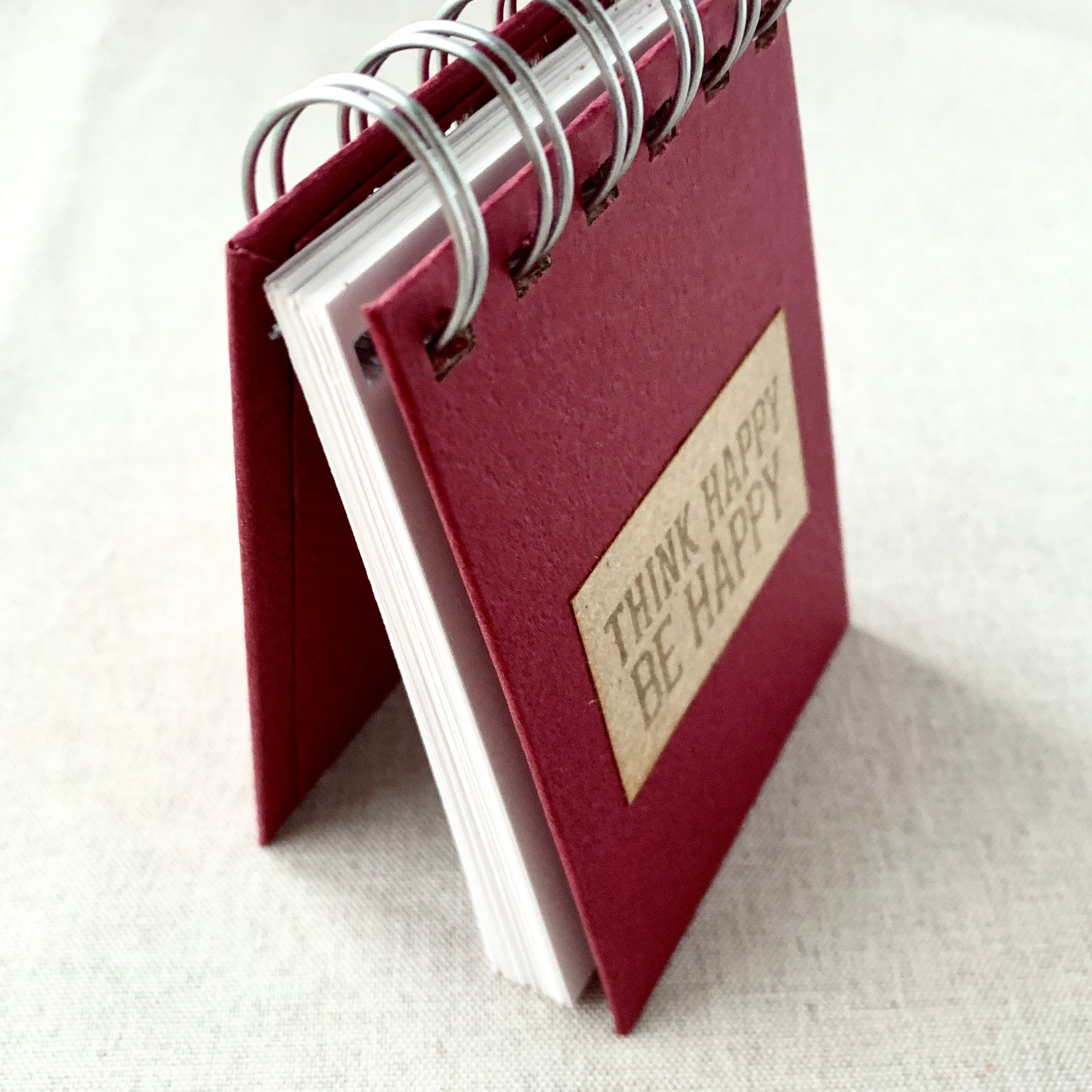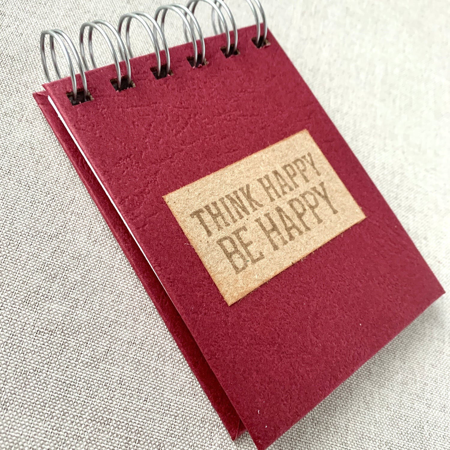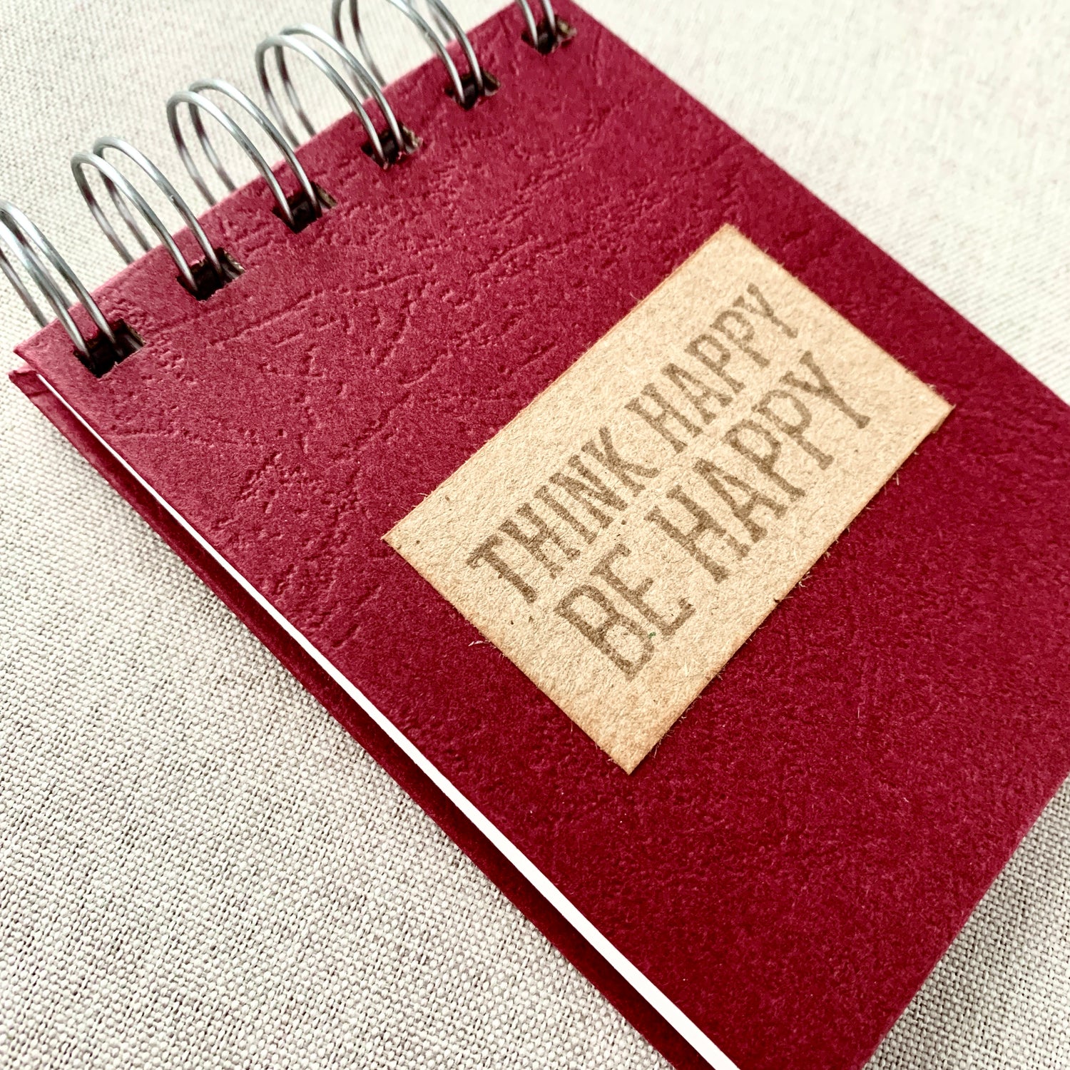 Think Happy Be Happy - Memo - Blank - Spiral Bound - Fountain Pen Notebook - Handmade Journal